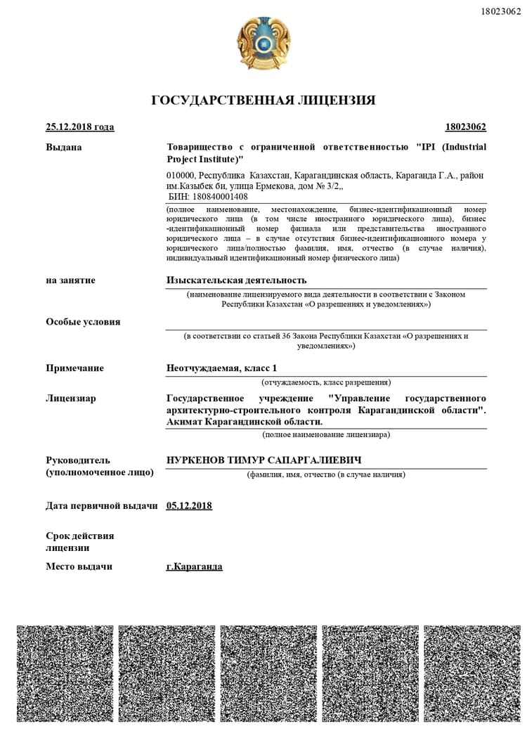 ТОО «IPI (Industrial Project Institute)» БИН: 180 840 001 408